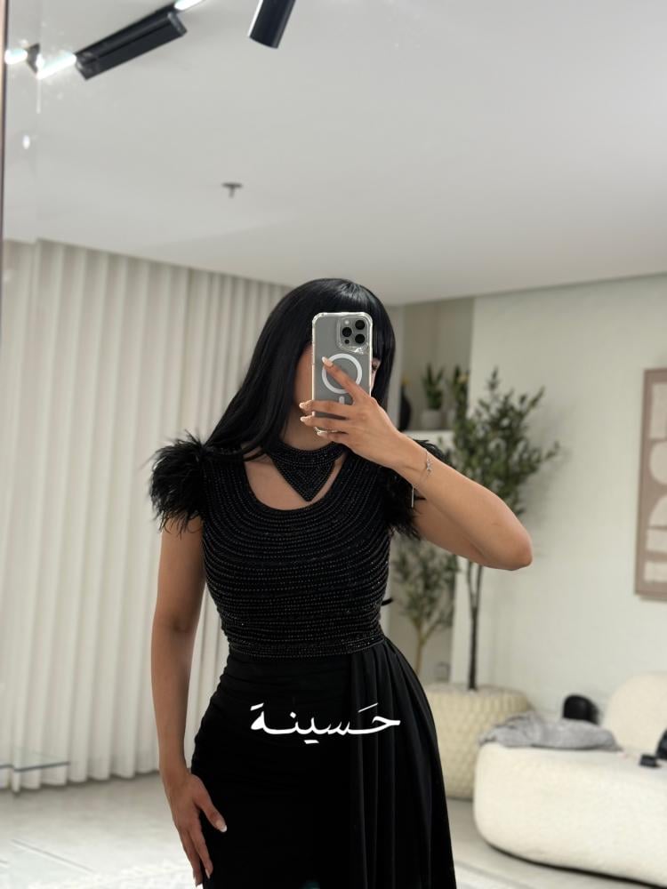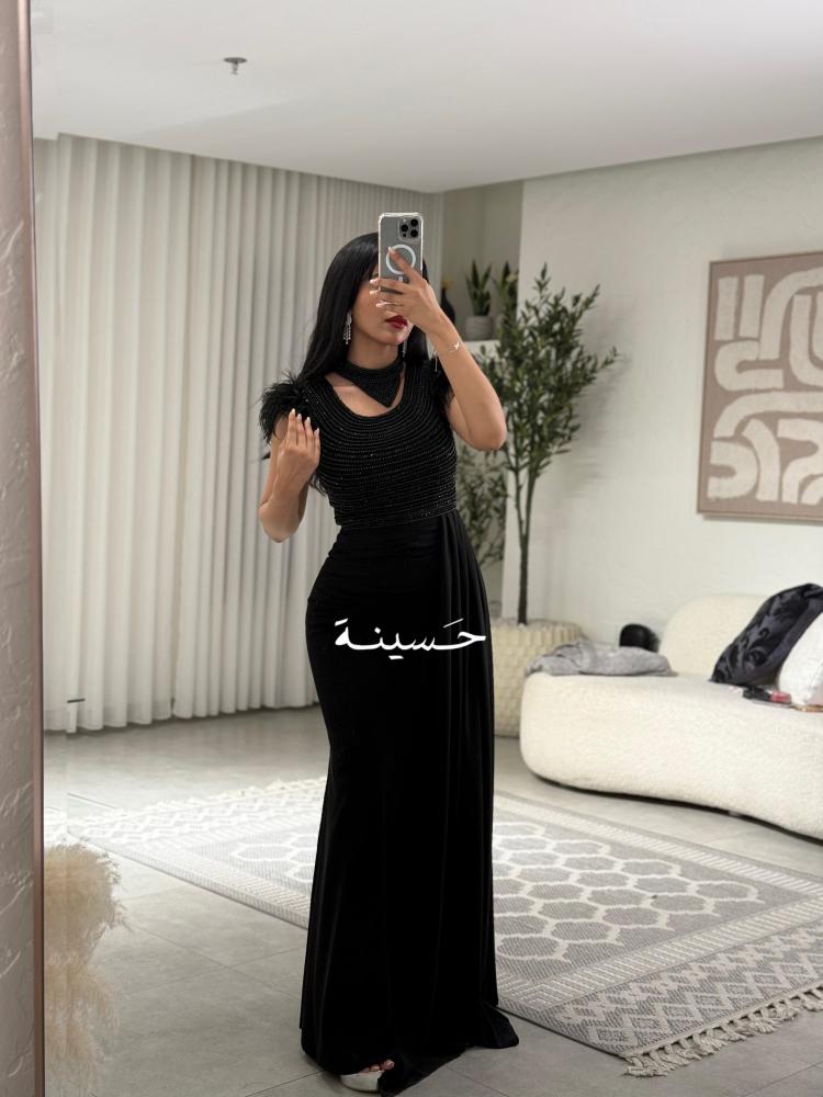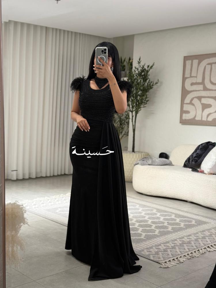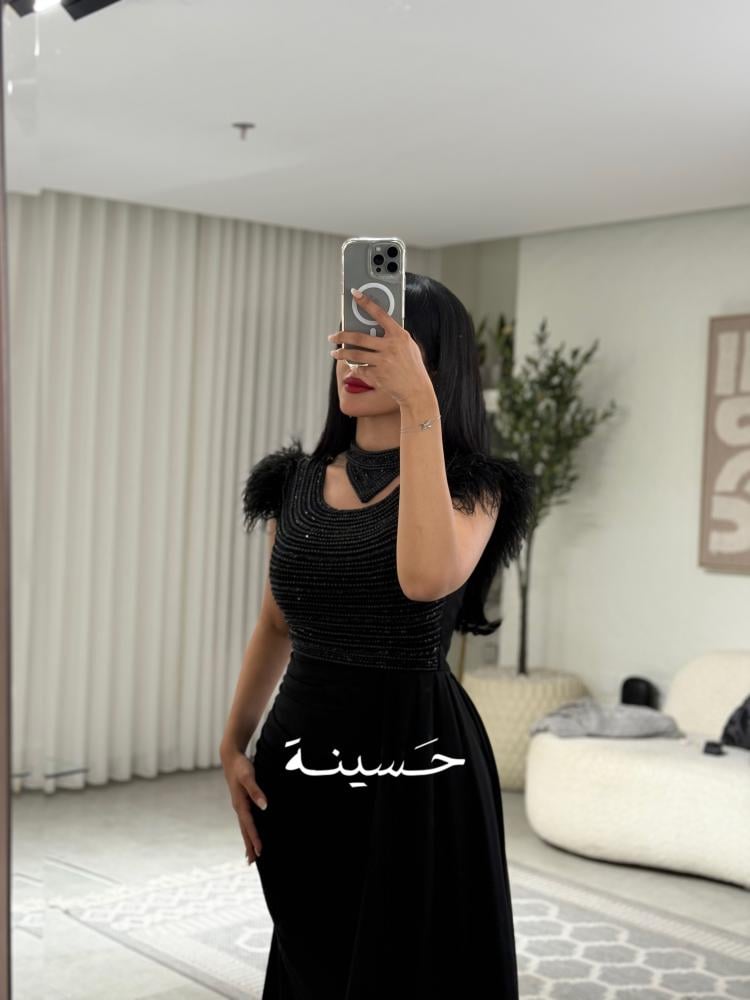 - التصميم: ريش ناعم على الأكتاف, مطرز بالكامل على الصدر بقصة ذيل مميزة. خامة مريحة وعالية الجودة، تضمن لكِ طلة مريحة طول السهرة.