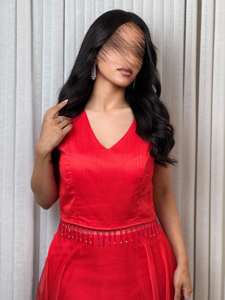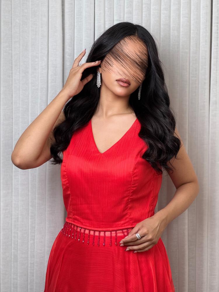 تيور باللون الأحمر الجذاب، يتوفر بتصميمين: أحدهما مزود بأكمام والآخر بحمالات، مما يتيح لك الاختيار حسب ذوقك والمناسبة. التنورة مصنوعة من قماش الشيفون الخفيف، مما يضيف لمسة من الأنوثة والحركة. الجزء السفلي من التنورة مزود باللون الزهري، ليمنح الفستان لمسة لونية جريئة وأنيقة. هذا التيور مثالي للمناسبات الخاصة حيث يمنحك إطلالة أنثوية وفاخرة.