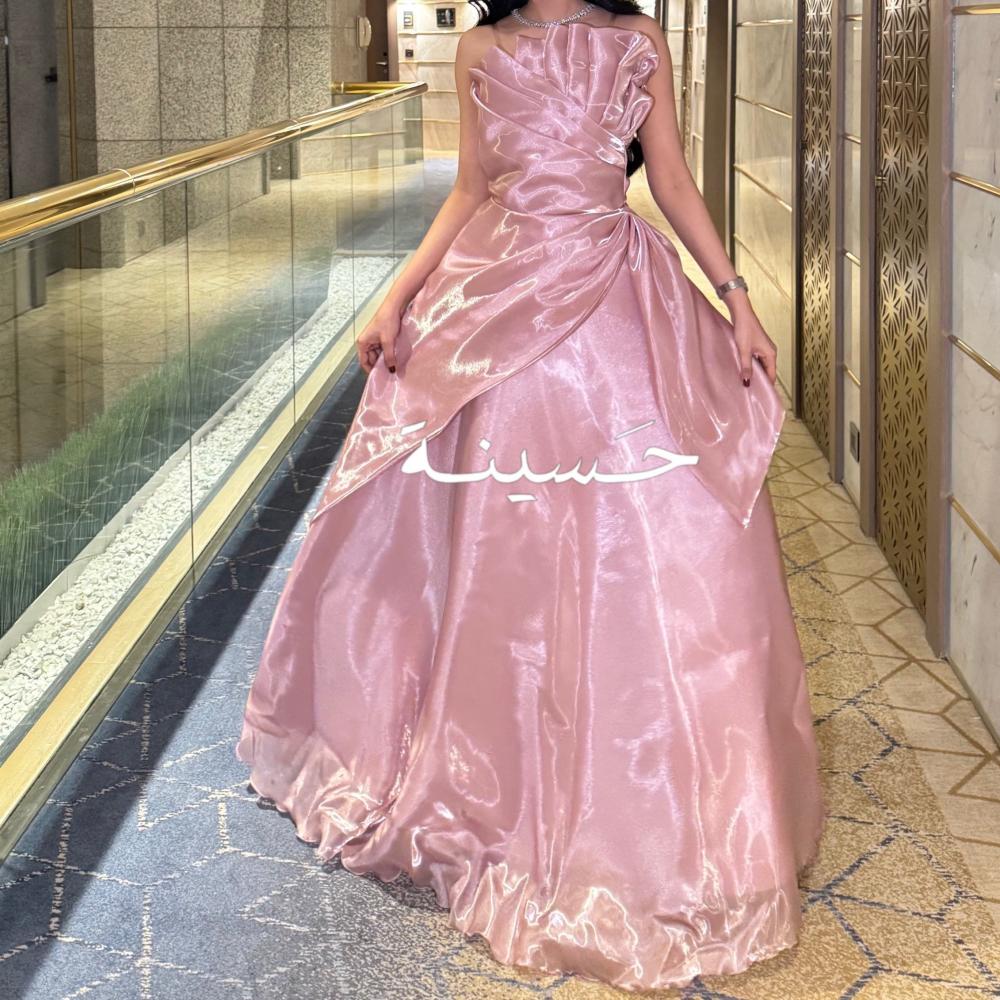فستان سهرة ساتان وردي بتصميم متموّجفستان أورغنزا وردي لامع بتصميم غير متماثل وطبقات أمامية تعطيه لمسة درامية فخمة. خامته خفيفة لكنها واقفة، تعكس الإضاءة وتعطي لمعة ساحرة من كل زاوية. تصميمه مناسب لطلّة أميرة بمعنى الكلمة