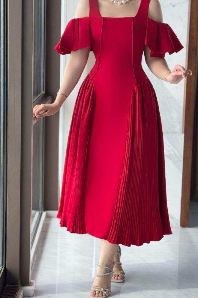 دريس أحمر قصير – لمسة أنوثة وجاذبية