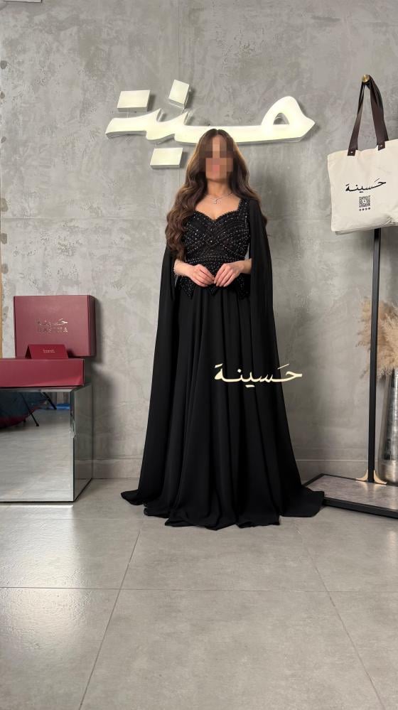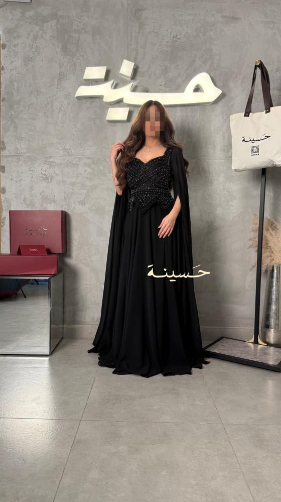 تكتمل فخامته بأكمام من الشيفون الطويل تنسدل برقي لتمنح الإطلالة حضورًا ملكيًا هادئًا، يجمع بين الغموض والأنوثة في آنٍ واحد.