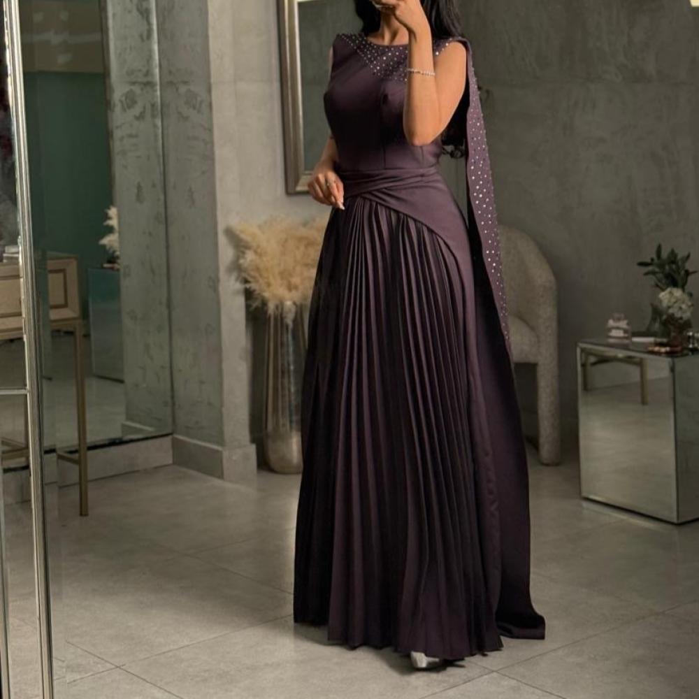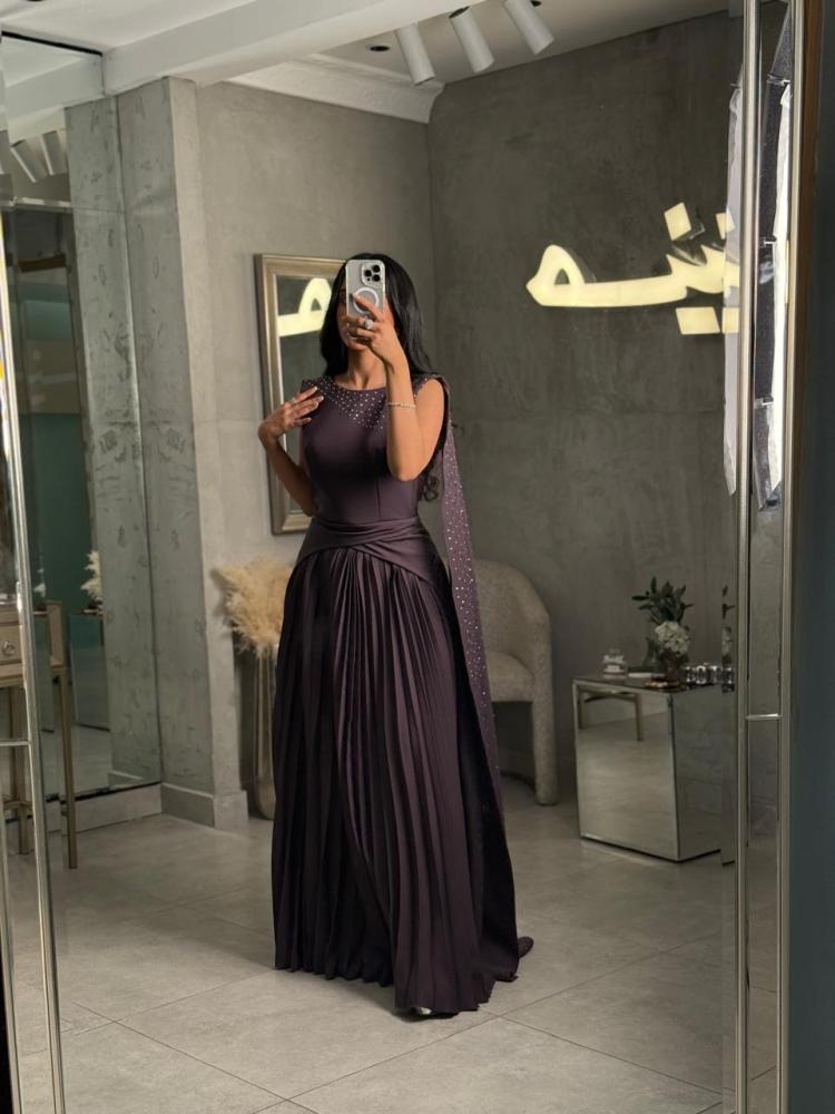 فستان مميز من حسنية بلونه البنفسجي الداكن وتصميمه الفاخر الذي يجمع بين الأناقة الكلاسيكية والتفاصيل العصرية.