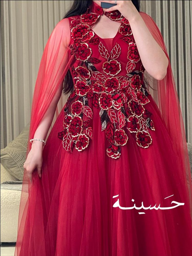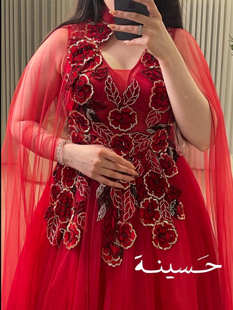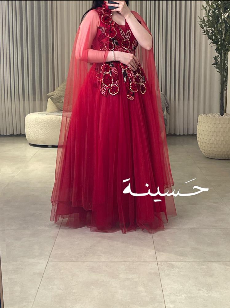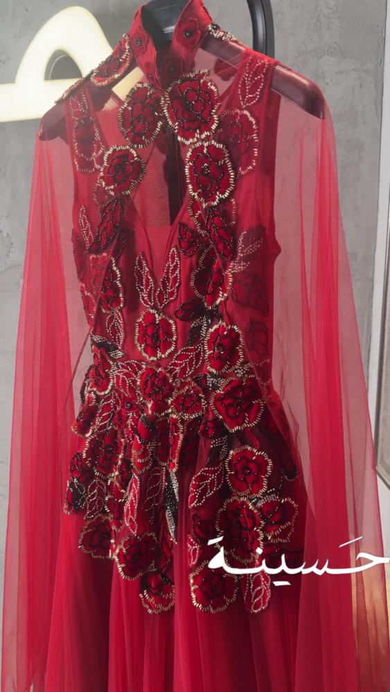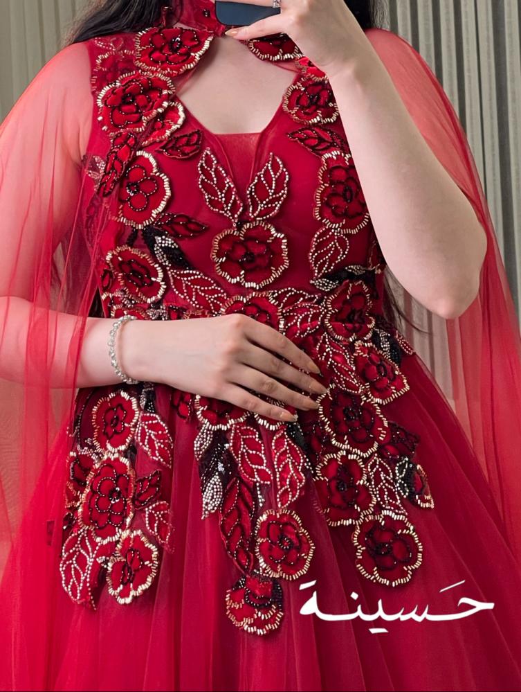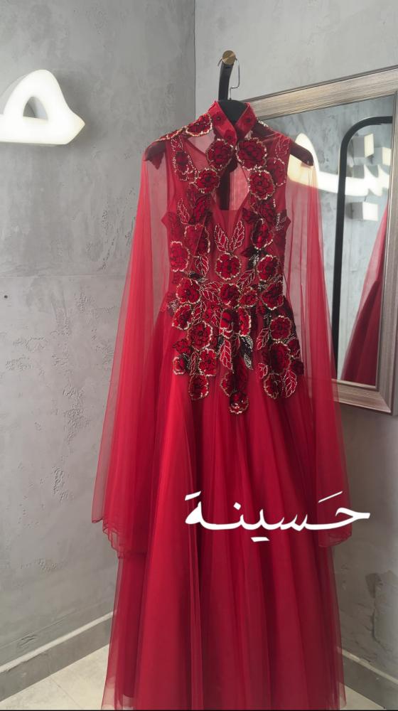 تصاميم : مناسبات الماركة : حسينة طول الفستان : 160 سمالفستان مصنوع من قماش التول الفاخر، خامته ناعمة وخفيفة بطبقات انسيابية. لونه أحمر داكن يعطي إطلالة فخمة، ويُصنف كفستان سهرة رسمي يناسب المناسبات المميزة