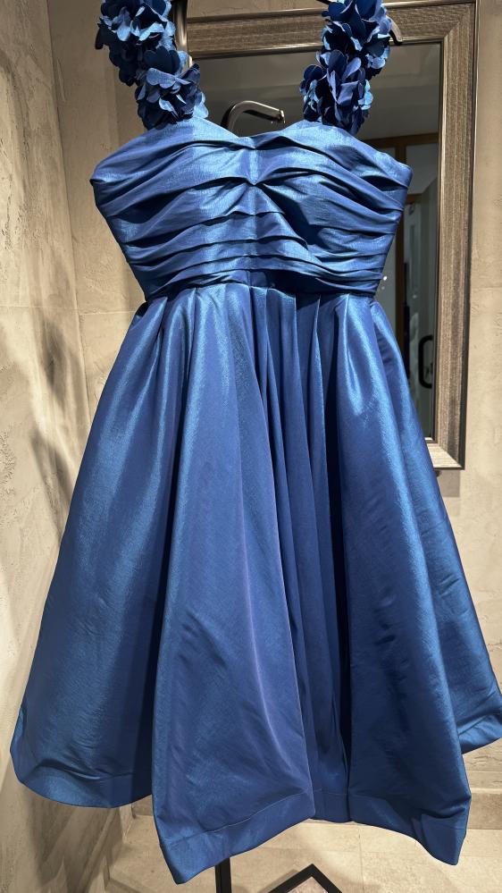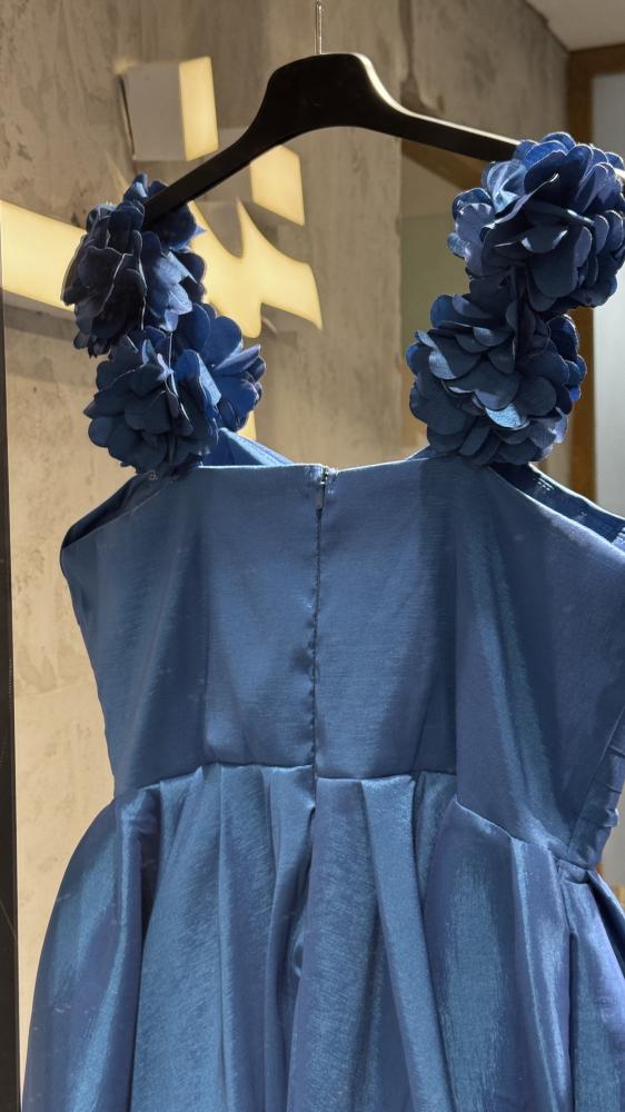 فستان قصير مزين بورود كتف