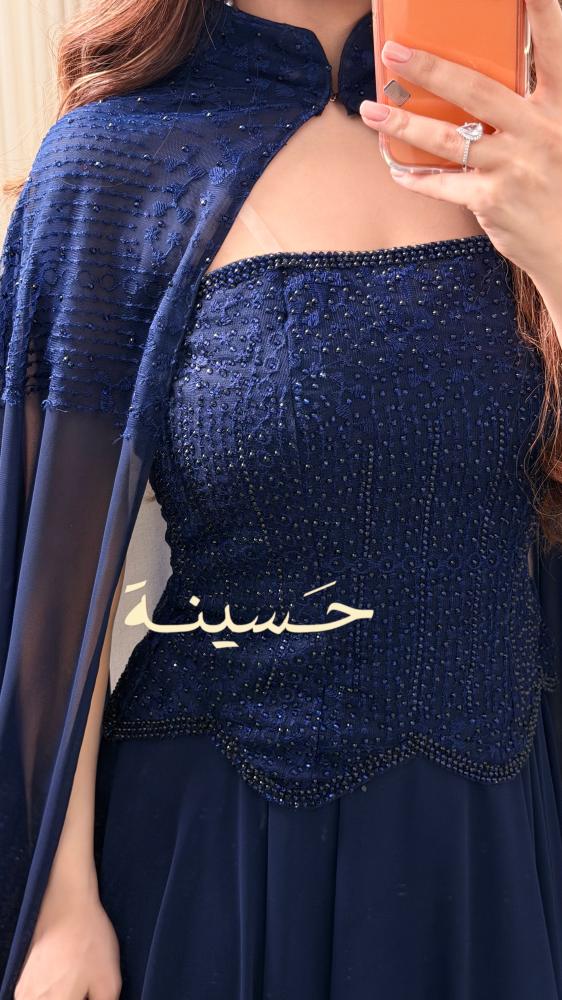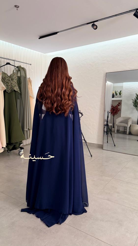 The look is accompanied by a transparent cape with matching embroidery that covers the shoulders and gives the dress an unparalleled royal presence, combining dignity and femininity in a captivating balance.