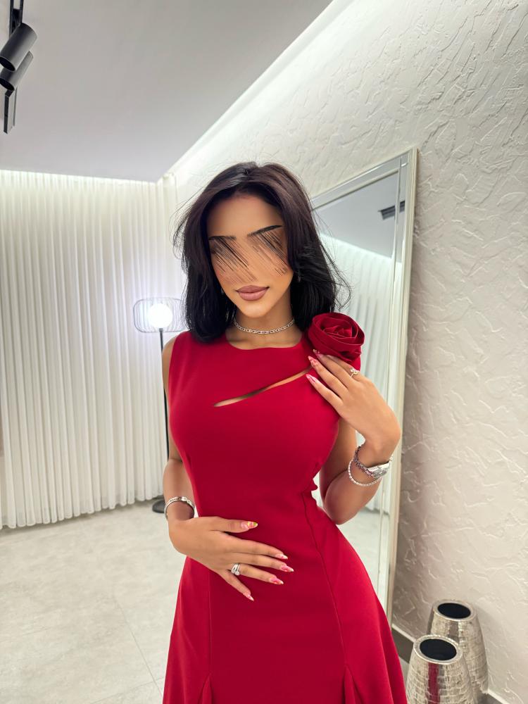 يجمع الفستان الميد بين الاناقة والحداثة، مصنوع من خامة الكريب و قطن الباربي الناعم، يتميز التصميم بدون ياقة مزينة بفتحة على الصدر و القصة الواسعة تحت الخصر ولمسة برسمة وردة الڤايوليت 💜